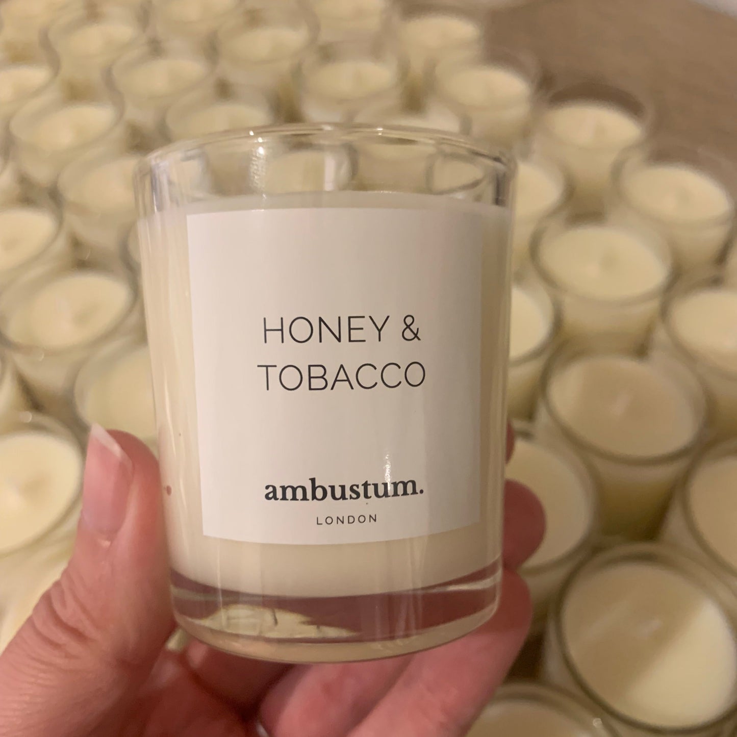 SAMPLE - Mini Clear Glass Honey & Tobacco Scented Candle
